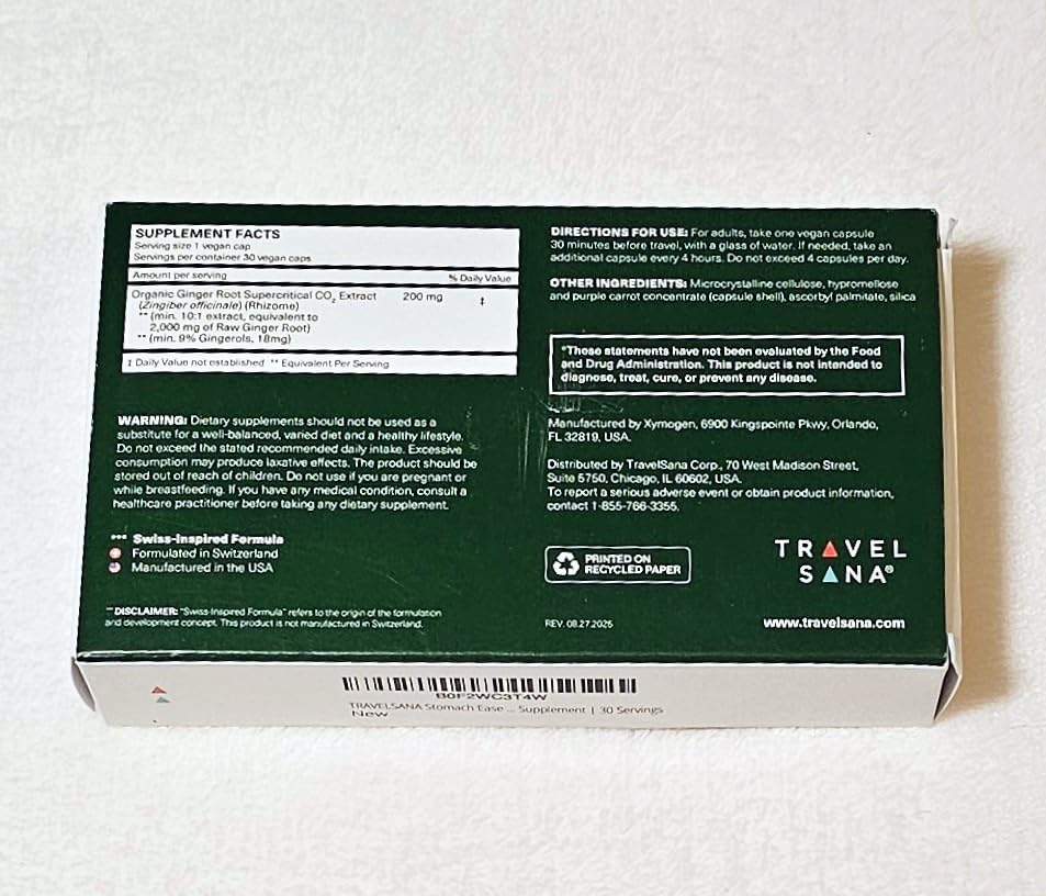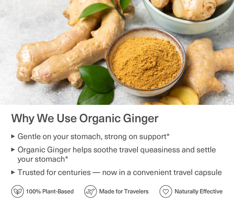 I ordered this originally for an upcoming trip, but the trip unfortunately got canceled. I tend to get upset stomachs and my go to is a glass of hot ginger tea to help settle my stomach. That's not always easy when I travel. I thought taking this organic ginger supplement would be a good alternative when I can't get to a hot glass of tea. I wasn't able to test it out on my trip, but I have tried it at home when my stomach wasn't feeling it's best. I love that it's organic and easy to take. Only one capsule. It helped ease my stomach pain, and I'm glad I have it on hand when I need it. I will definitely be taking them on my next trip.