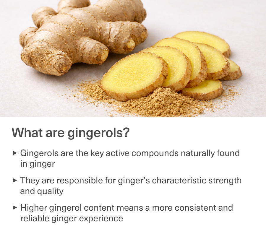 Together, these findings suggest that standardized ginger extract, rich in gingerols, offers effective, science-backed support for digestive comfort and the body’s natural response to nausea.*